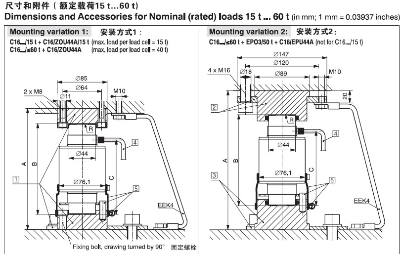 額定負載20 t / 30 t / 40 t / 60 t / 100 t / 200 t