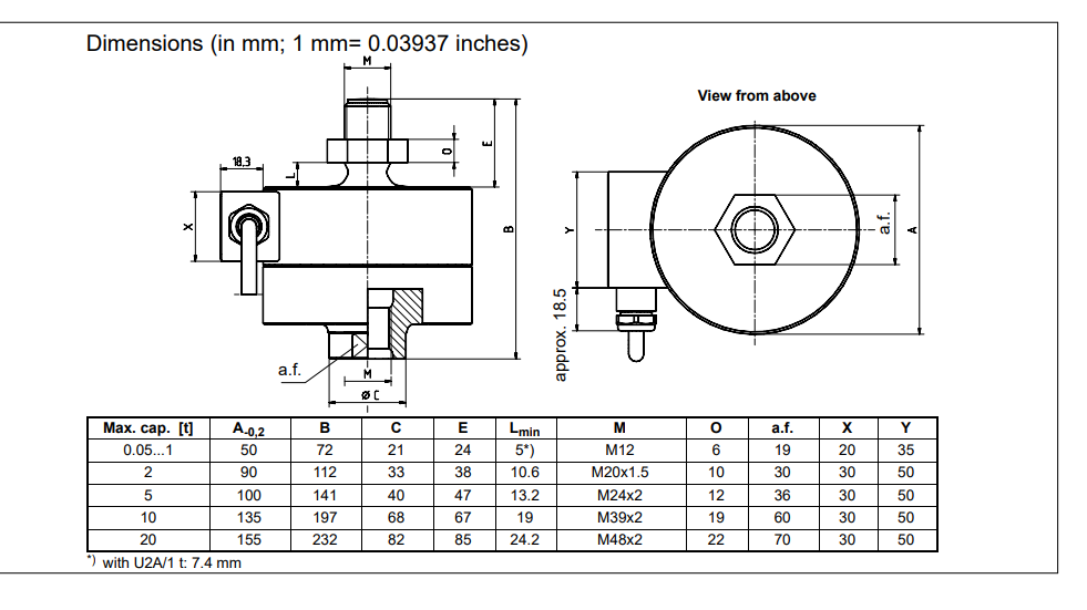 6ze廣州南創(chuàng)電子科技有限公司德國(guó)HBM稱重傳感器U2AD1/5t產(chǎn)品尺寸圖:6ze廣州南創(chuàng)電子科技有限公司