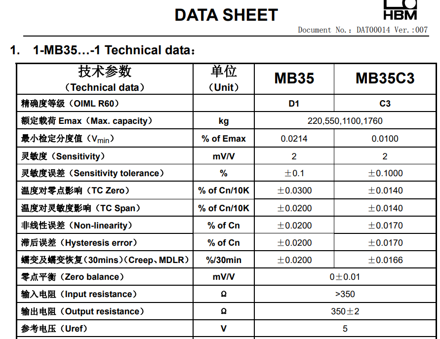 HBM 1-MB35C3/550kg-1稱(chēng)重傳感器型號(hào)類(lèi)別技術(shù)參數(shù)選型安裝等資料信息,如果有關(guān)HBM傳感器其他相關(guān)方面需要,可直接電話聯(lián)系