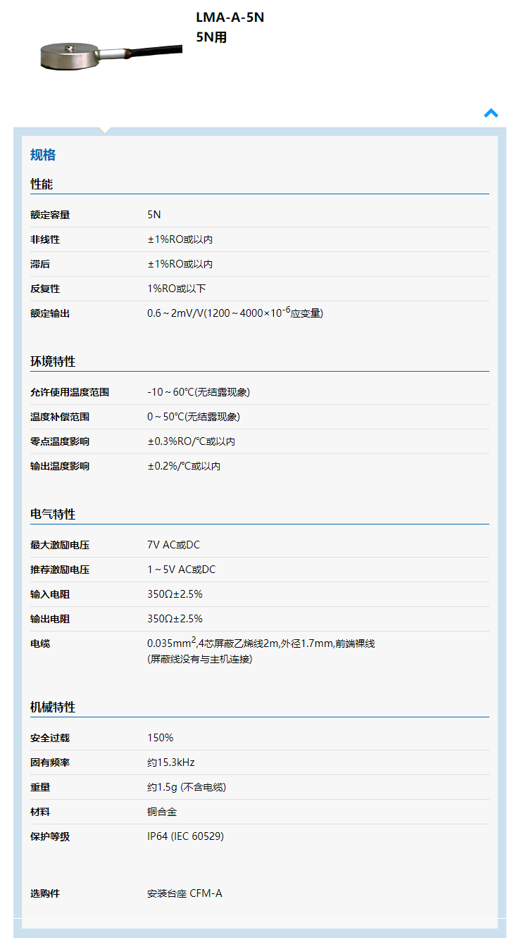 7mU廣州南創(chuàng)電子科技有限公司日本Kyowa 共和傳感器相關型號量程:7mU廣州南創(chuàng)電子科技有限公司LMC-A-5KN,LMC-A-10KN,LMC-A-20KN,LMC-A-50KN
