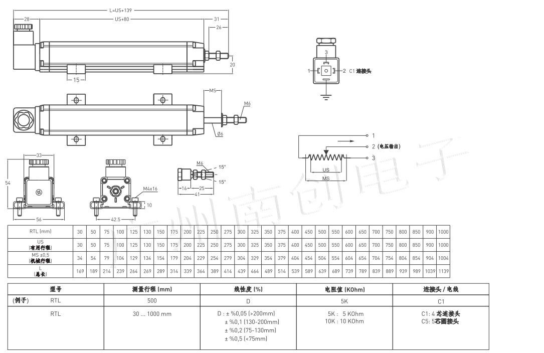 65w廣州南創(chuàng)電子科技有限公司電阻式線性位移傳感器帶內(nèi)置轉(zhuǎn)換模塊系列:ELPT、ELPH、ELPC、ELPM