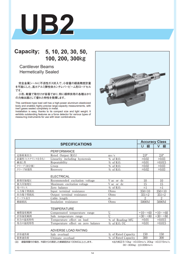 UB2-300kg稱重傳感器Yamato技術參數:IsY廣州南創(chuàng)電子科技有限公司