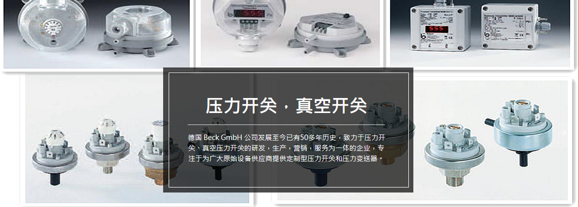 jMt廣州南創(chuàng)電子科技有限公司Beck公司德國(guó)超過(guò)40年的專(zhuān)業(yè)生產(chǎn)廠商:產(chǎn)品有Beck Type901壓力開(kāi)關(guān),Beck Type930.8X微差壓開(kāi)關(guān) Beck Type984壓差傳感器和Beck Type985微差壓傳感器,廣泛應(yīng)用于樓宇自動(dòng)化中壓力監(jiān)測(cè)系統(tǒng)中。