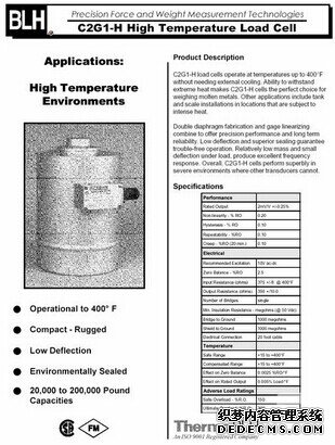 高溫稱重傳感器C2G1-H系列----可支持400°F