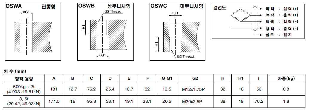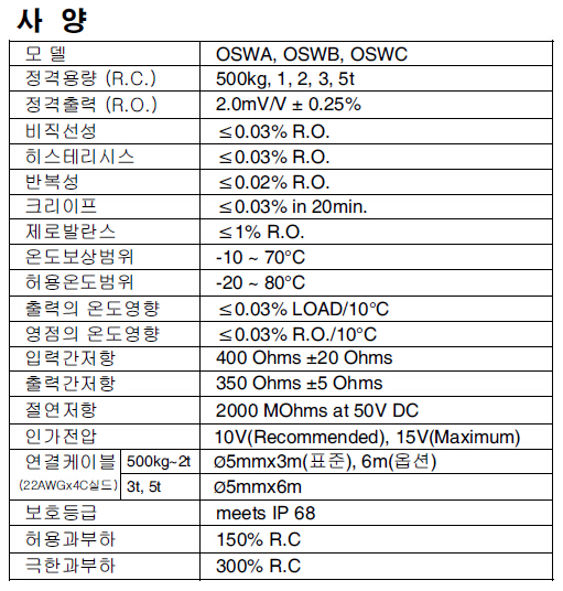 韓國Bongshin OSW系列可用量程: