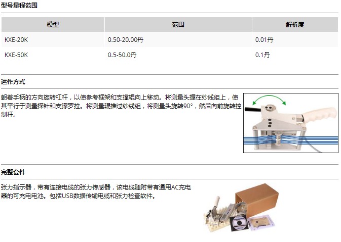 便攜式測量頭使用50毫米寬的測量輥來測量織機和經(jīng)紗的紗線組