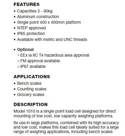1010系列稱重傳感器其他相關(guān)型號及量程具體詳細信息: