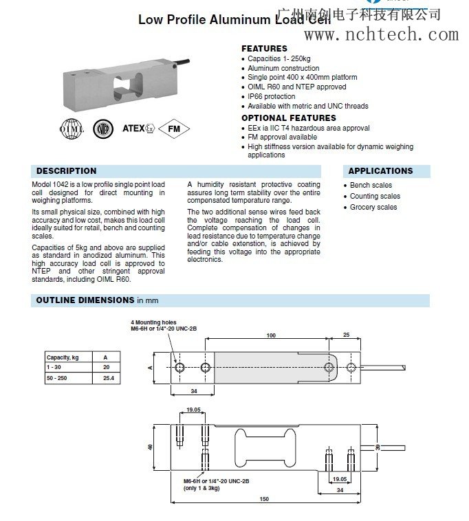 美國Tedea 1042稱重傳感器量程:1042-1kg 1042-3kg 1042-5kg 1042-7kg 1042-10kg 1042-15kg 1042-20kg 1042-30kg 1042-50kg 1042-75kg 1042-100kg。