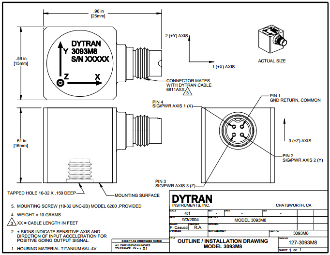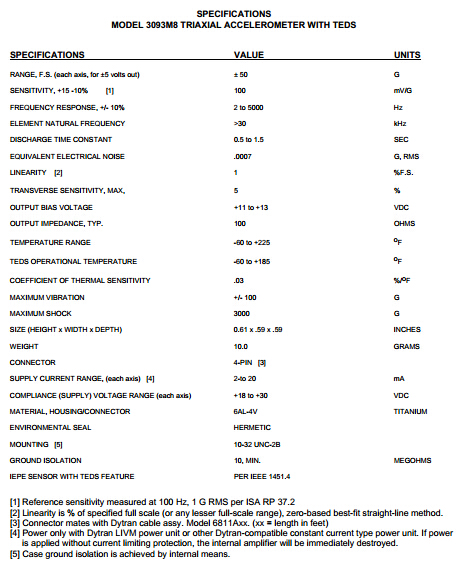美國(guó)Dytran 3093M8加速度傳感器規(guī)范圖: