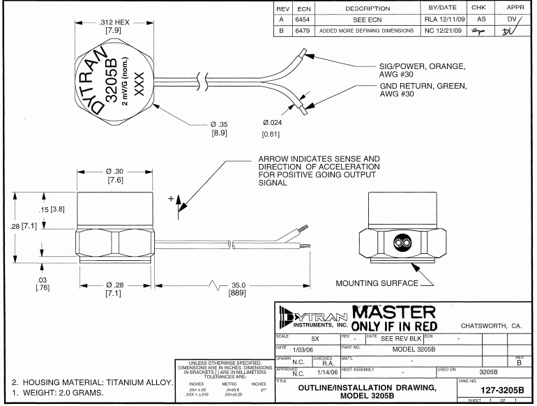 美國Dytran3205B加速度傳感器規(guī)范圖: