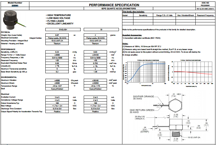 美國Dytran3205M1加速度傳感器的性能規(guī)格參考圖: