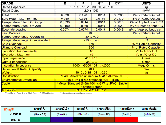 特迪亞tedea 1041稱重傳感器系列所有量程如下:aYo廣州南創(chuàng)電子科技有限公司