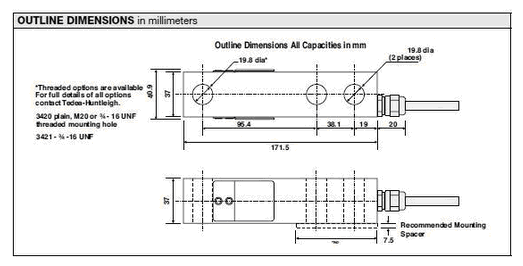 美國(guó)特迪亞tedea 3420稱(chēng)重傳感器產(chǎn)品尺寸:jyY廣州南創(chuàng)電子科技有限公司