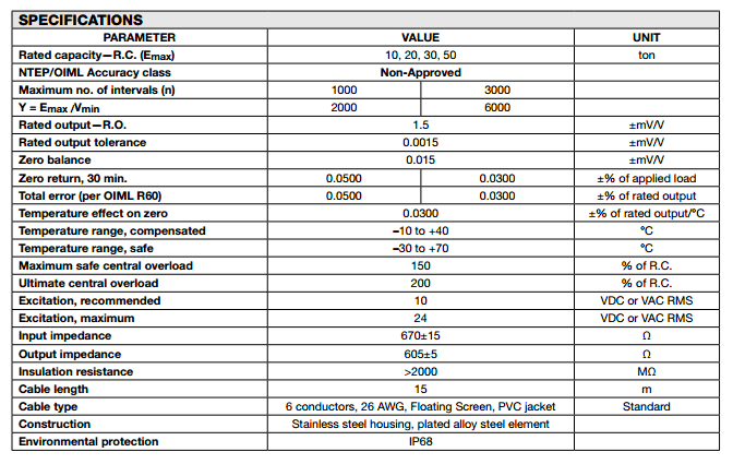 美國特迪亞tedea 121稱重傳感器系列所有量程如下:agJ廣州南創(chuàng)電子科技有限公司