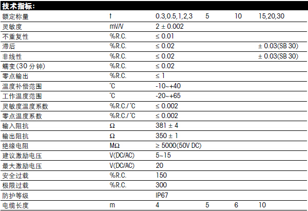 梅特勒托利多SB系列稱重傳感器所有量程如下:e0g廣州南創(chuàng)電子科技有限公司