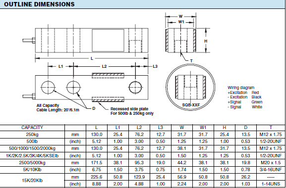 美國(guó)世銓Celtron SQB系列稱重傳感器所有量程如下: yAM廣州南創(chuàng)電子科技有限公司