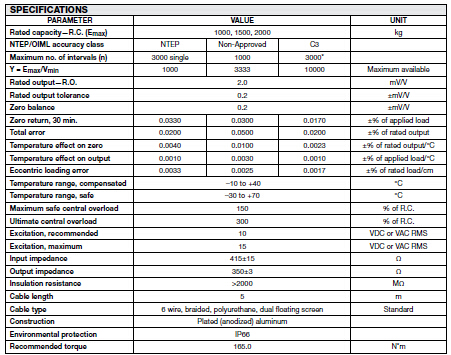 tedea 1320-2T稱重傳感器是單點式稱重傳感器,材質(zhì)為鋁制材料,可提供UNC 螺紋,可選功能:EEx ia IIC T4 -,危險區(qū)域:認證;FM認證可選,OIML R60 和 NTEP 認證,