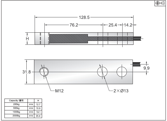 wjD廣州南創(chuàng)電子科技有限公司美國Transcell稱重傳感器SBST-500KG產(chǎn)品尺寸:wjD廣州南創(chuàng)電子科技有限公司