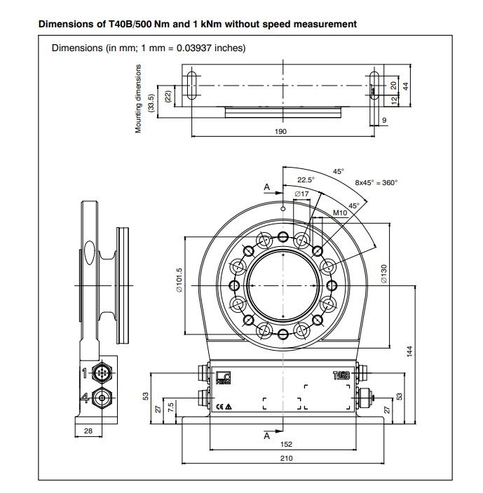 2kI廣州南創(chuàng)電子科技有限公司德國HBM扭矩傳感器T40B/500NM產(chǎn)品尺寸圖: