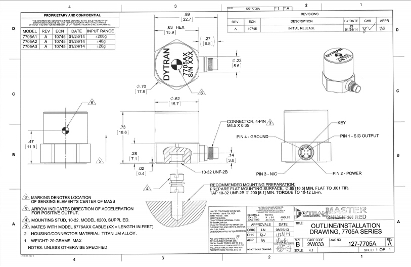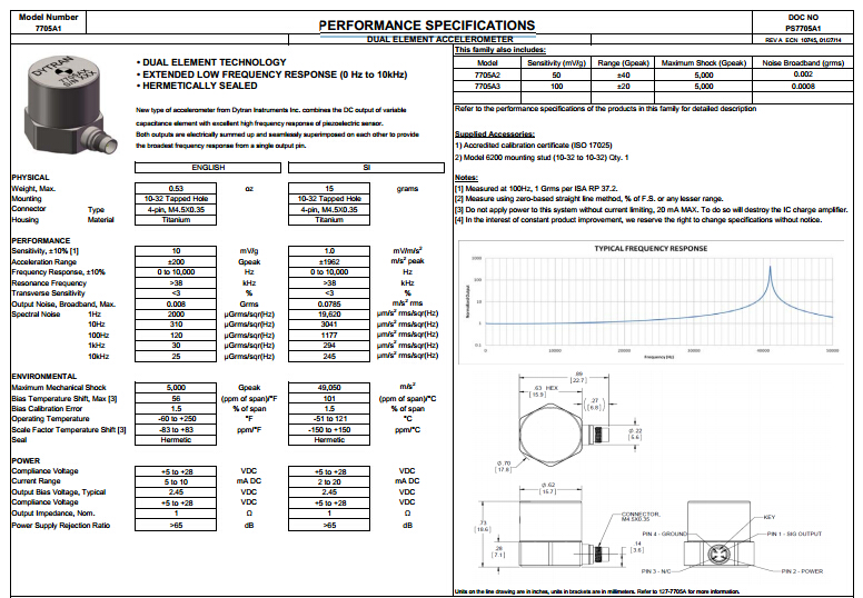 美國Dytran7705A1加速度傳感器規(guī)格圖: