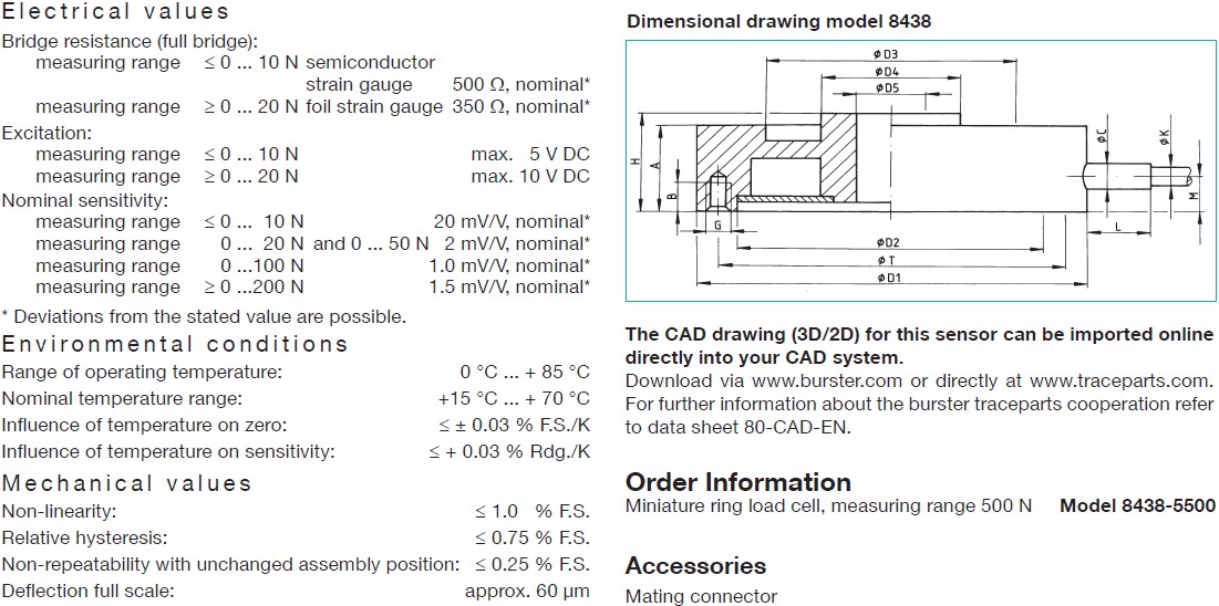德國Burster 8438-5050稱重傳感器描述: