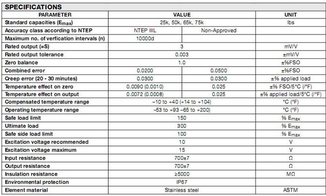17332: 9803-50klbs-1 40,000 lb 30ft RTI 3mV/V 700 OHM WW FM IP67 NTEP IIIL