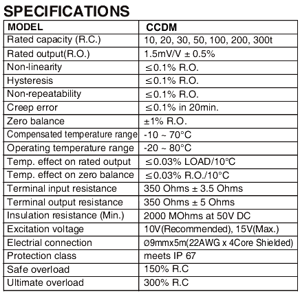 韓國(guó)Bongshin CCDM-50T稱(chēng)重傳感器技術(shù)指標(biāo):