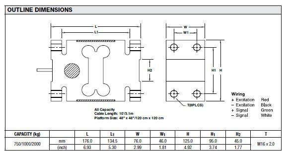 美國世銓Celtron HOC-750kg稱重傳感器選型圖: