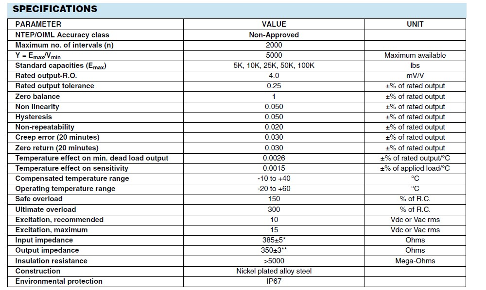 Celtron稱重傳感器 LCD-5klb稱重傳感器技術(shù)指標(biāo):