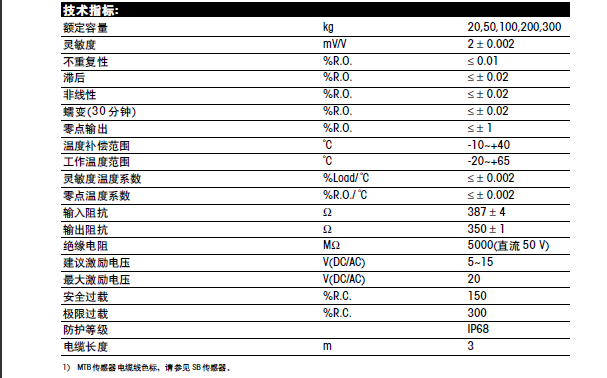 梅特勒托利多MTB-20 稱重傳感器技術指標: