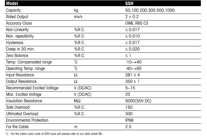 梅特勒托利多SSH-300稱重傳感器技術(shù)指標(biāo):