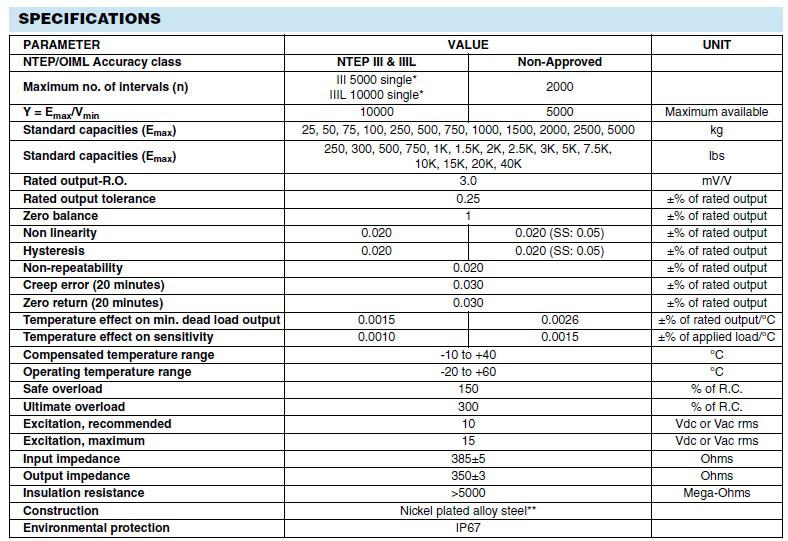 • NTEP Class III 5000S, lllL10000 approval from 250lb to