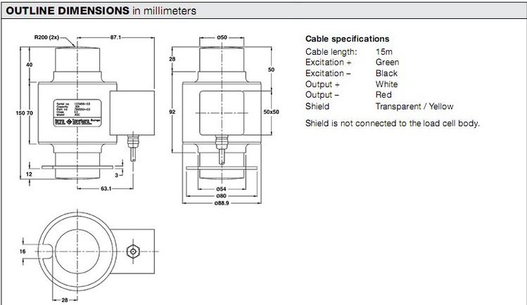 21469: Load Cell,SBM 363-B10-1.5 K-20P1 1,500 lb 20ft RTI 3mV/V 350 OHM WW NTEP IIIL 10 S FM