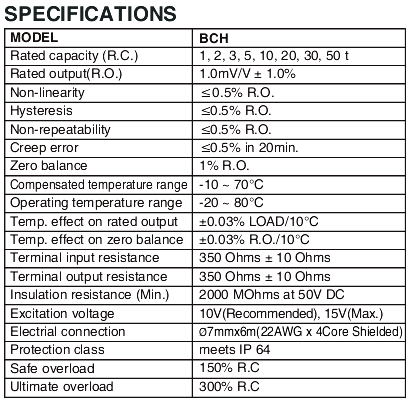 韓國(guó)奉信BCH稱重傳感器量程如下: