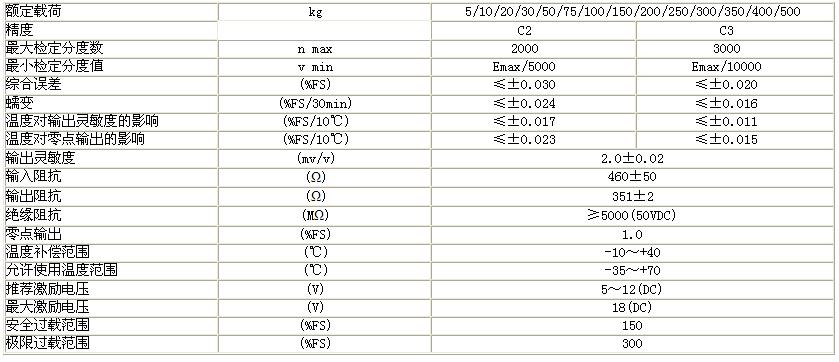 BM11-C3-200kg-3B6SC稱重傳感器技術參數(shù):
