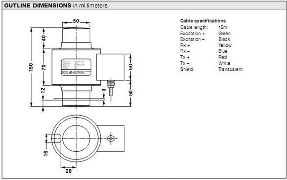 17335: DSC-30T -1 100,000 lb 30ft RTI 3mV/V 700 OHM WW FM IP67 NTEP