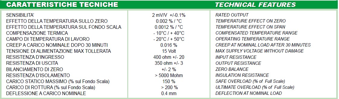 意大利LaumasFCA-750kg稱重傳感器技術(shù)特點(diǎn):