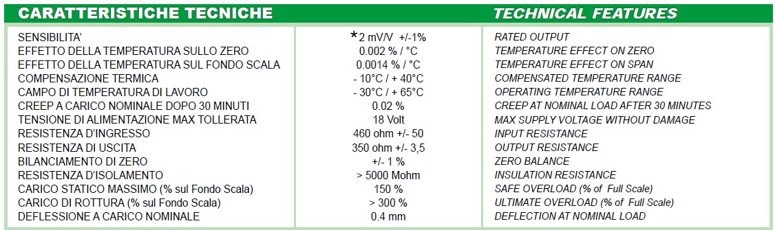 FCOL-500kg傳感器在ACCIAIO INOX 17-4 PH值- ERRORE COMBINATO < + / - 0,02 % ( 0.013 % C4 )