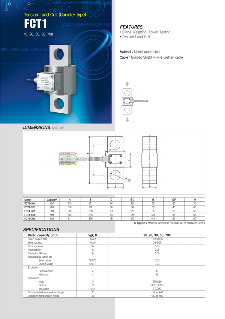 FCM1-50KG、FCM1-100KG、FCM1-200KG、FCM1-300KG、FCM1-500KG、FCM1-1T、FCM1-2T、FCM1-3T、FCM1-5T、FCM1-10T、FCM1-20T、