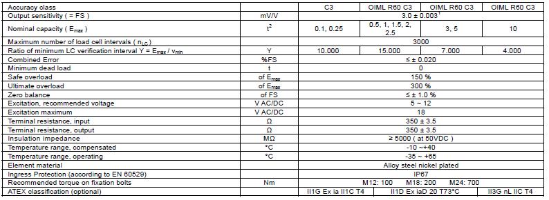 H8C-C3-100kg-4B1稱重傳感器輸出電壓將不會達到最大輸入電壓: <+60℃、<+120℃、<+200℃
