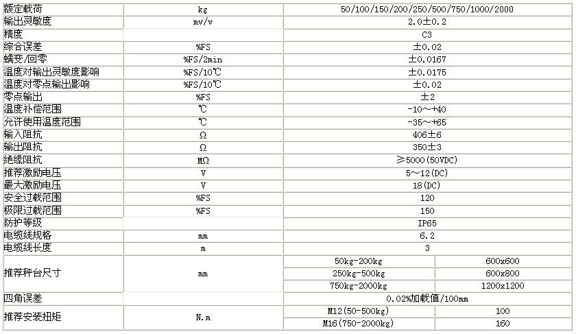 L6F-C3-150kg-3B6稱重傳感器相關技術參數(shù):