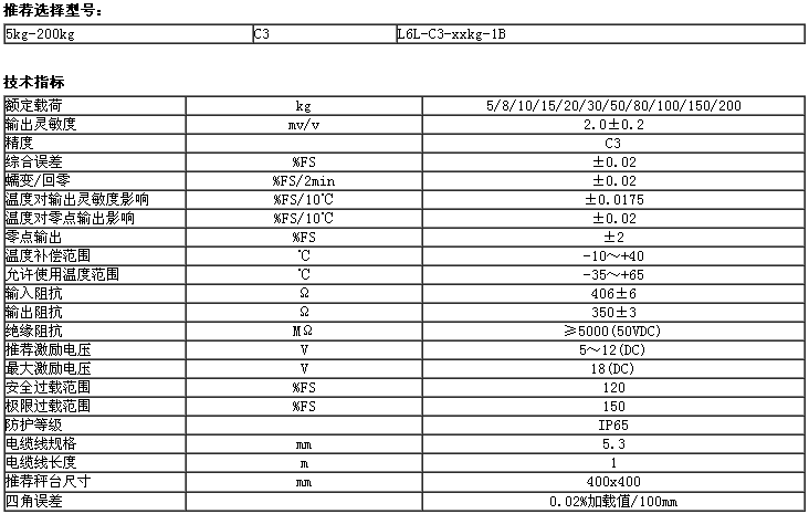 ★L6L-C3-80KG可滿足3kg-50kg 量程范圍內(nèi)的測量。