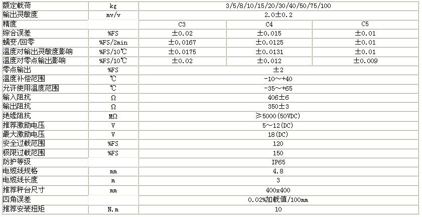 L6N-C3-30kg-3B6稱重傳感器密封等級: IP98