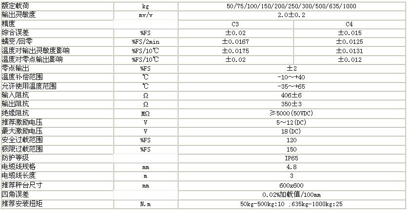 L6T-C3-250kg-3B6稱(chēng)重傳感器精度等級(jí):典型±0.25%FS,最大±0.5%FS (包含非線(xiàn)化、遲滯性和重復(fù)性)