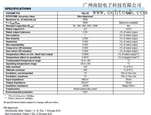 美國世銓LCD-30klb稱重傳感器技術(shù)參照資料: