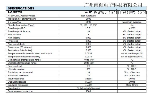 美國(guó)世銓MBB-100kg稱重傳感器技術(shù)參數(shù):