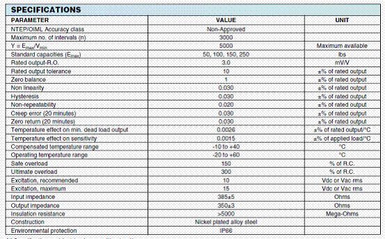 美國(guó)世銓Celtron MBB-25kg稱重傳感器主要特性: