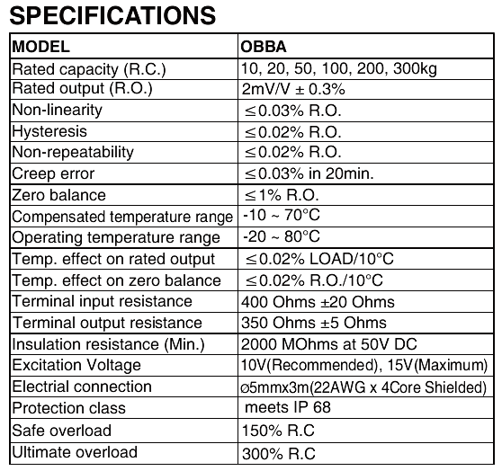 韓國(guó)bongshin OBBA-300傳感器系列其他量程: