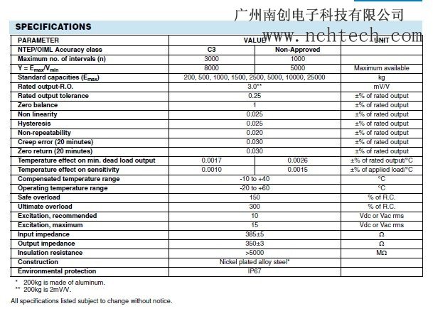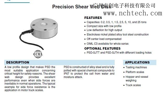 美國(guó)世銓PSD-10t稱重傳感器技術(shù)參數(shù):