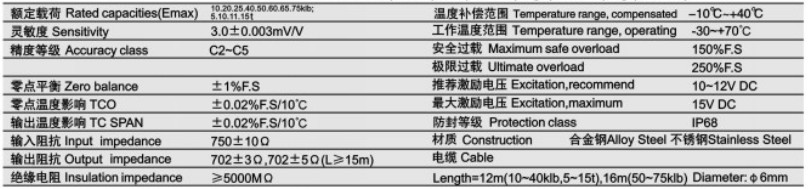 QSB-A-5t橋式傳感器參數(shù):